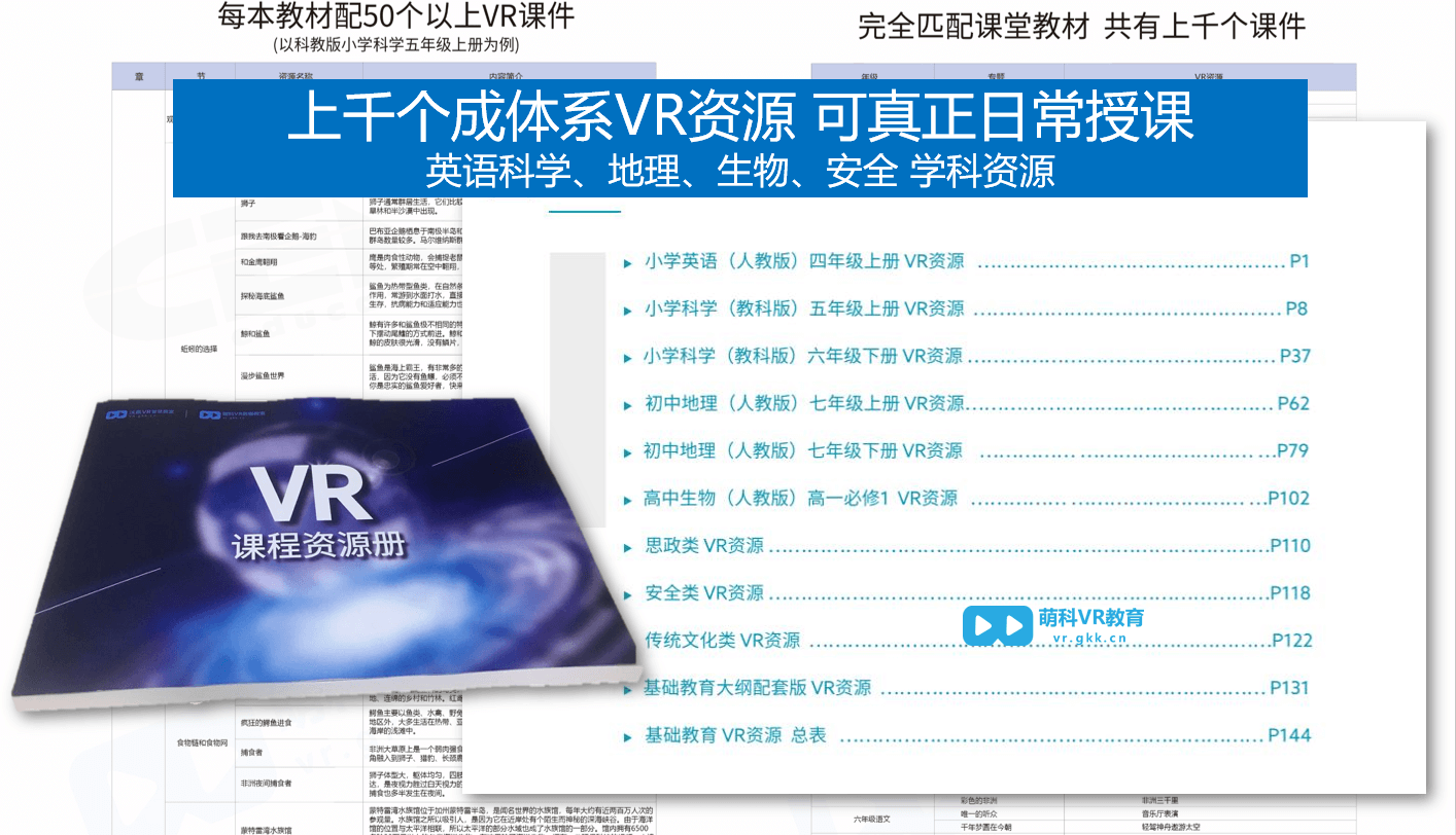 | 课件数量 | 几百个孤立课件 | 上千个成体系连续课件,切实支持教师日常使用,支持教师自主VR制课 |